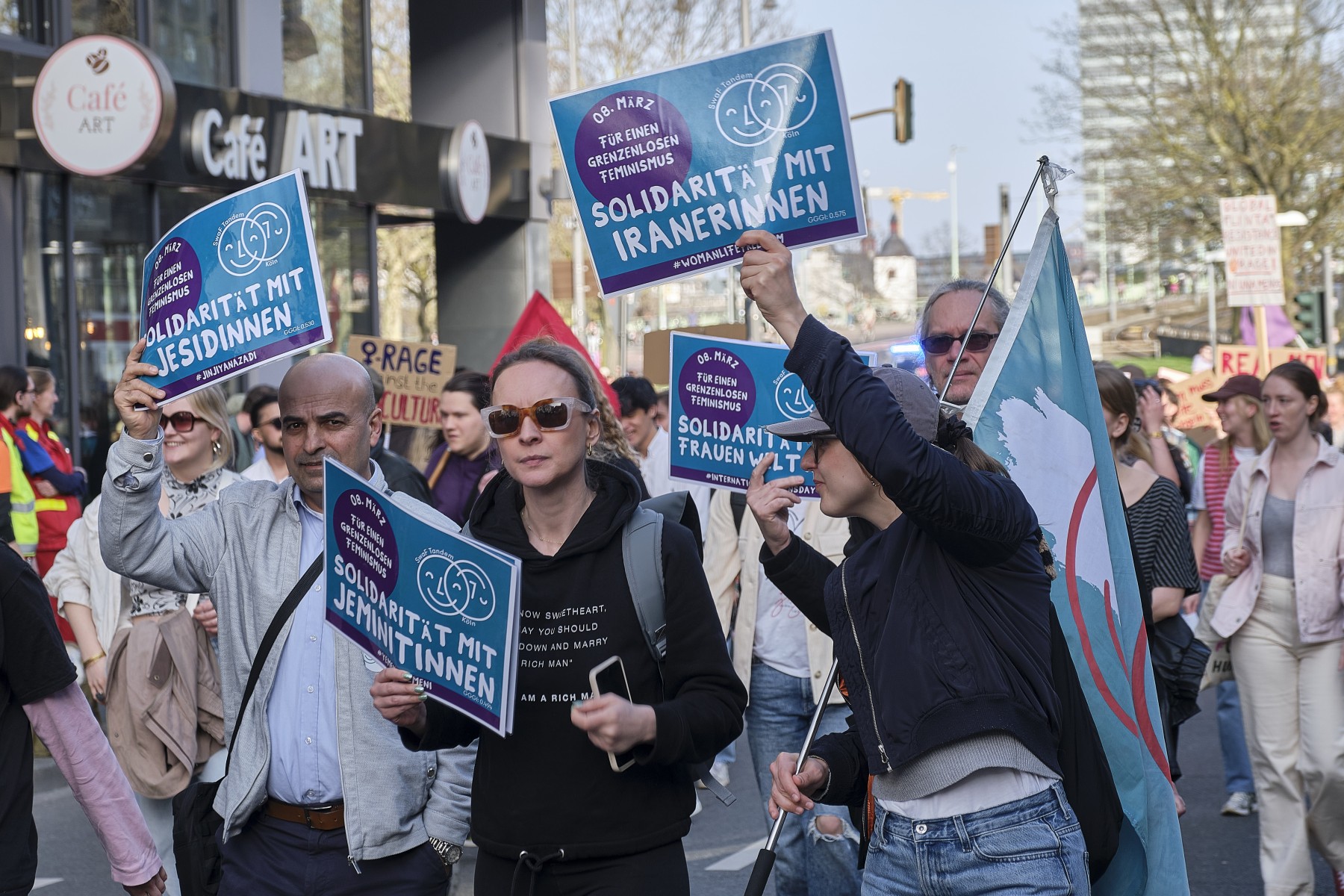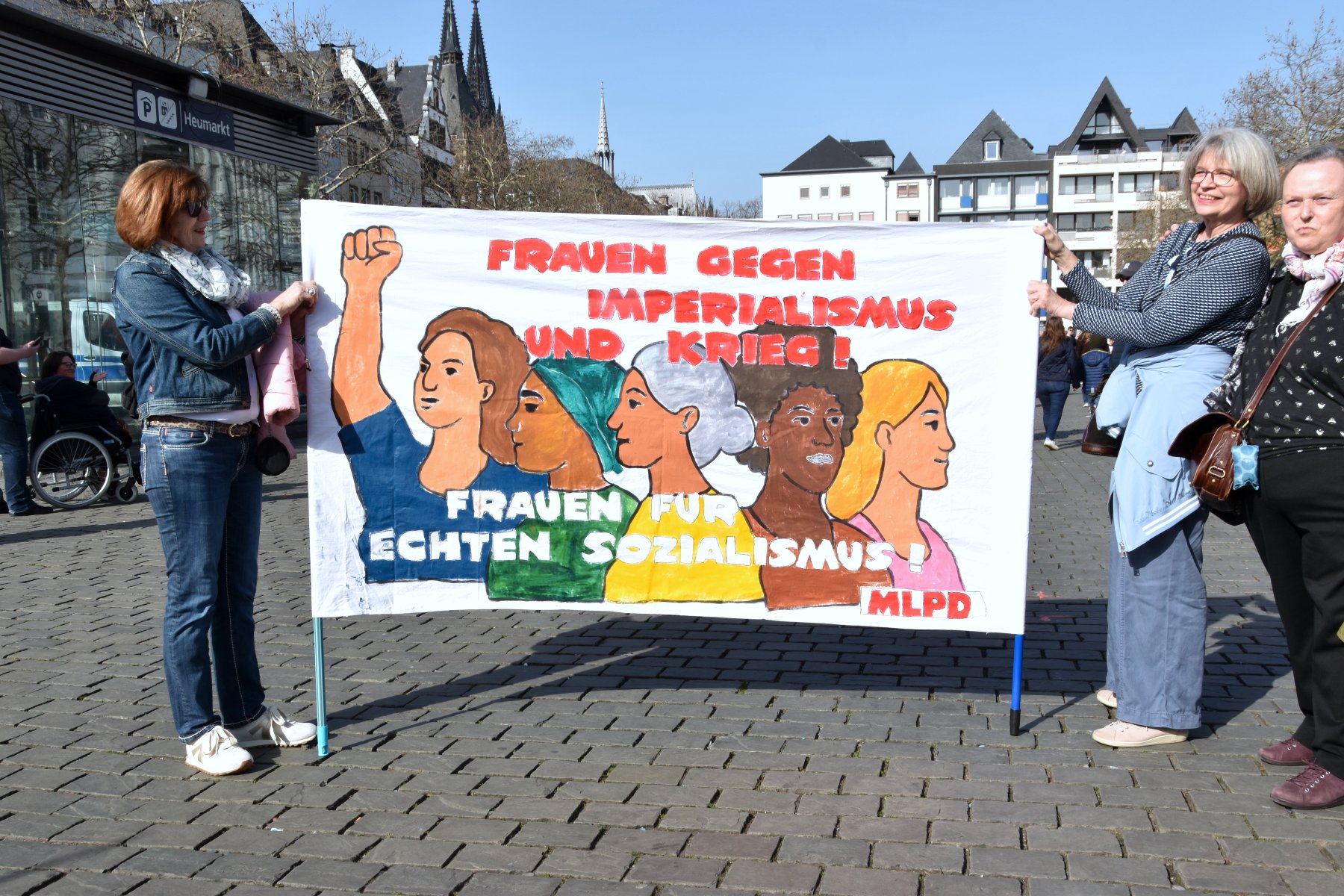 Der „Weltfrauentag 2026“ fand in Köln mit zahlreichen Aktionen und Demonstrationen statt. Unter dem kämpferischen Motto „Heraus zum feministischen Kampftag 2026! Patriarchat entwaffnen! Feministischen Frieden weltweit schaffen!“ fand die Demonstration mit Hauptveranstaltung auf dem Kölner Heumarkt mit unglaublichen ca. 12.000 Teilnehmern statt, die nicht alle Platz fanden.