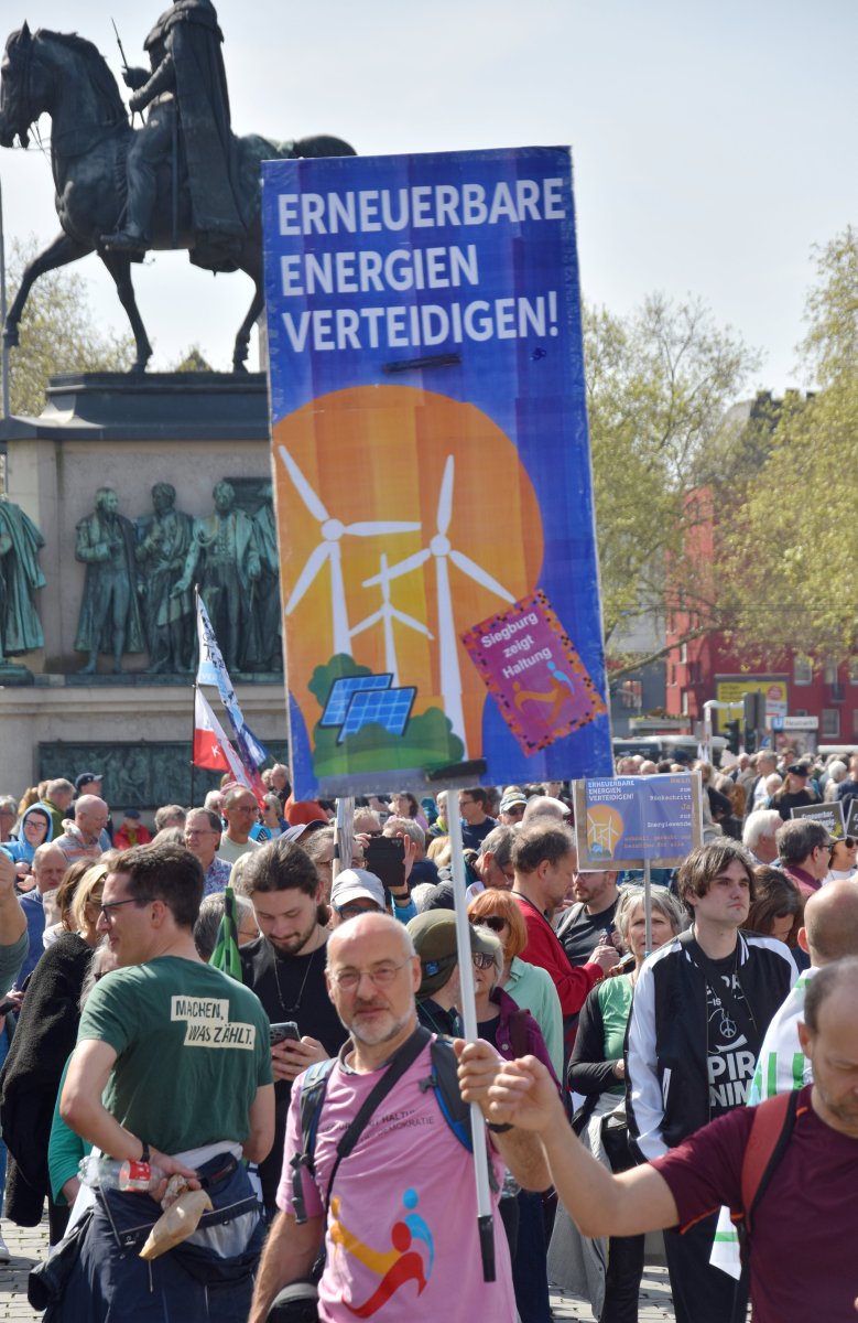 Am 18. April wurde unmissverständlich in Köln und drei anderen Großstädten gefordert: “Wir sagen Nein zu Rückschritten – und Ja zu einer Energiewende, die schneller, gerechter und bezahlbar für alle wird.“ Für die Veranstalter war es ein Erfolg: Es sollen bundesweit 80.000 Teilnehmer gezählt worden sein: Köln 30.000, Berlin 24.000, Hamburg 15.000 und München 12.000. Die Proteste sollen weitergehen.