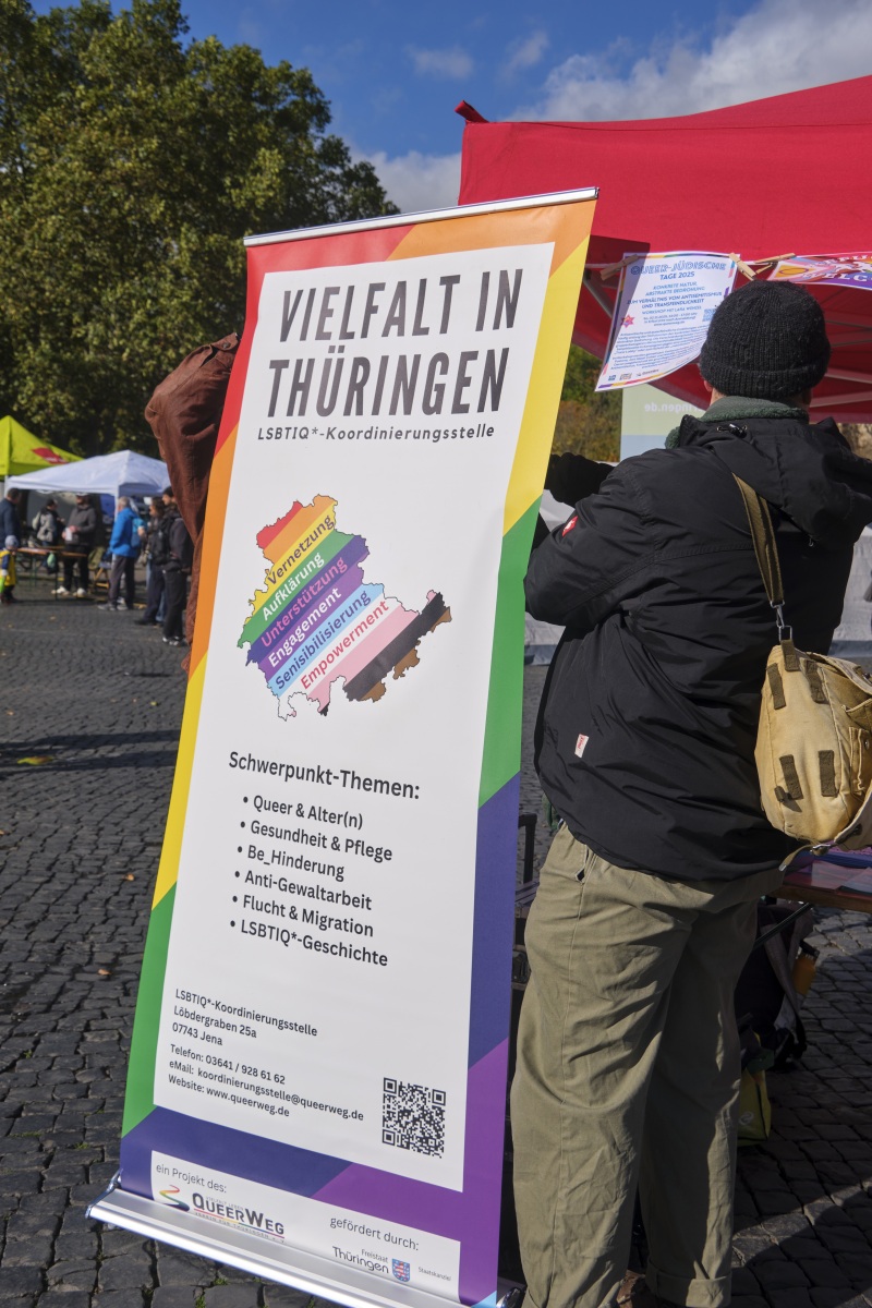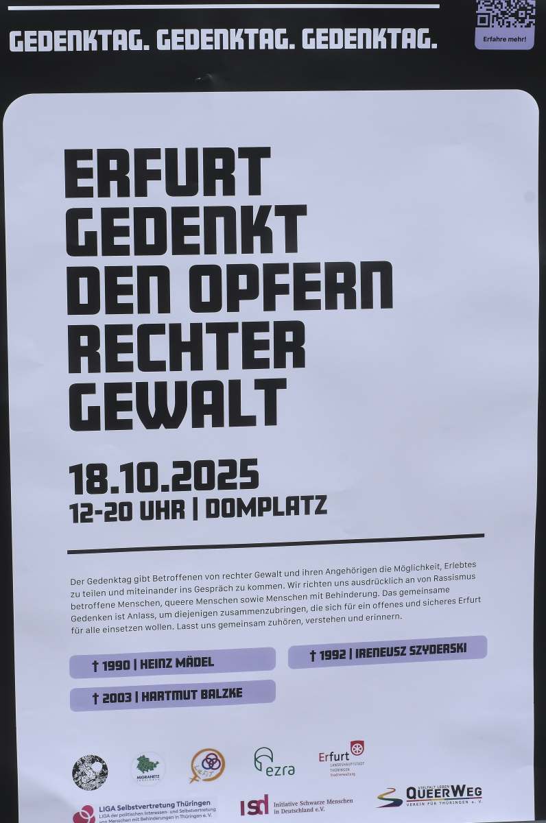 Am gleichen Tag, am 18.10.25, fand vor dem Erfurter Dom eine Veranstaltung zum Gedenken an die Opfer rechter Gewalt in Thüringen statt, an der sich viele Organisationen und Gewerkschaften beteiligt haben. Im Anschluss an diese Veranstaltung gab es einen recht überschaubaren Aufmarsch mit Trommelgetöse von Rechtsradikalen. Einige trugen Plakate mit der Aufschrift „Ich habe keinen Krieg mit Russland.“ Dabei ist es Russland, der längst gegen uns und Europa einen Informationskrieg und einen hybriden Krieg führt, um uns zu spalten und letztlich zu zerstören.