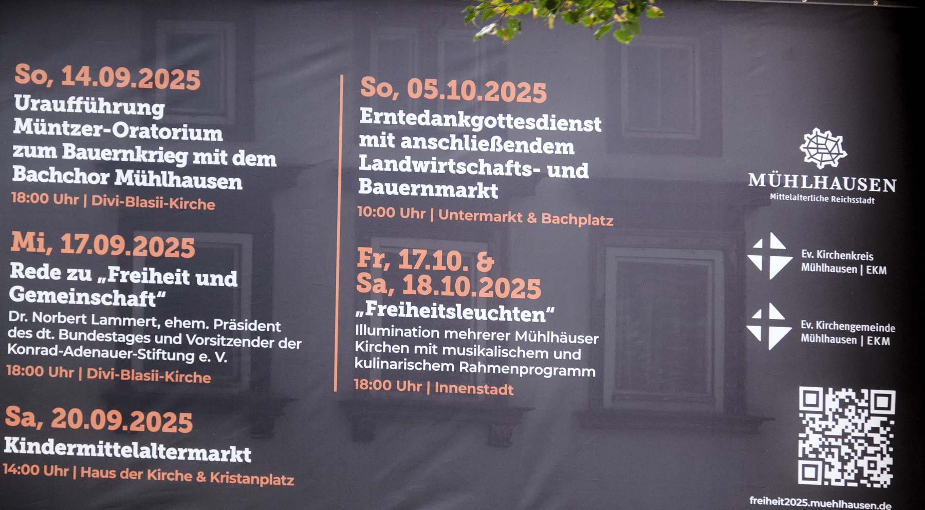 Vergangenes Wochenende endete im thüringischen Mühlhausen das Freiheitsfest 2025. Gedacht wurde an den Bauernkrieg als Befreiungskrieg vor 500 Jahren. Feierlicher Abschluss war eine imposante Videoprojektion an Mühlhäuser Kirchen. Ein Ausschnitt ist am Ende dieses Textes zu sehen.
