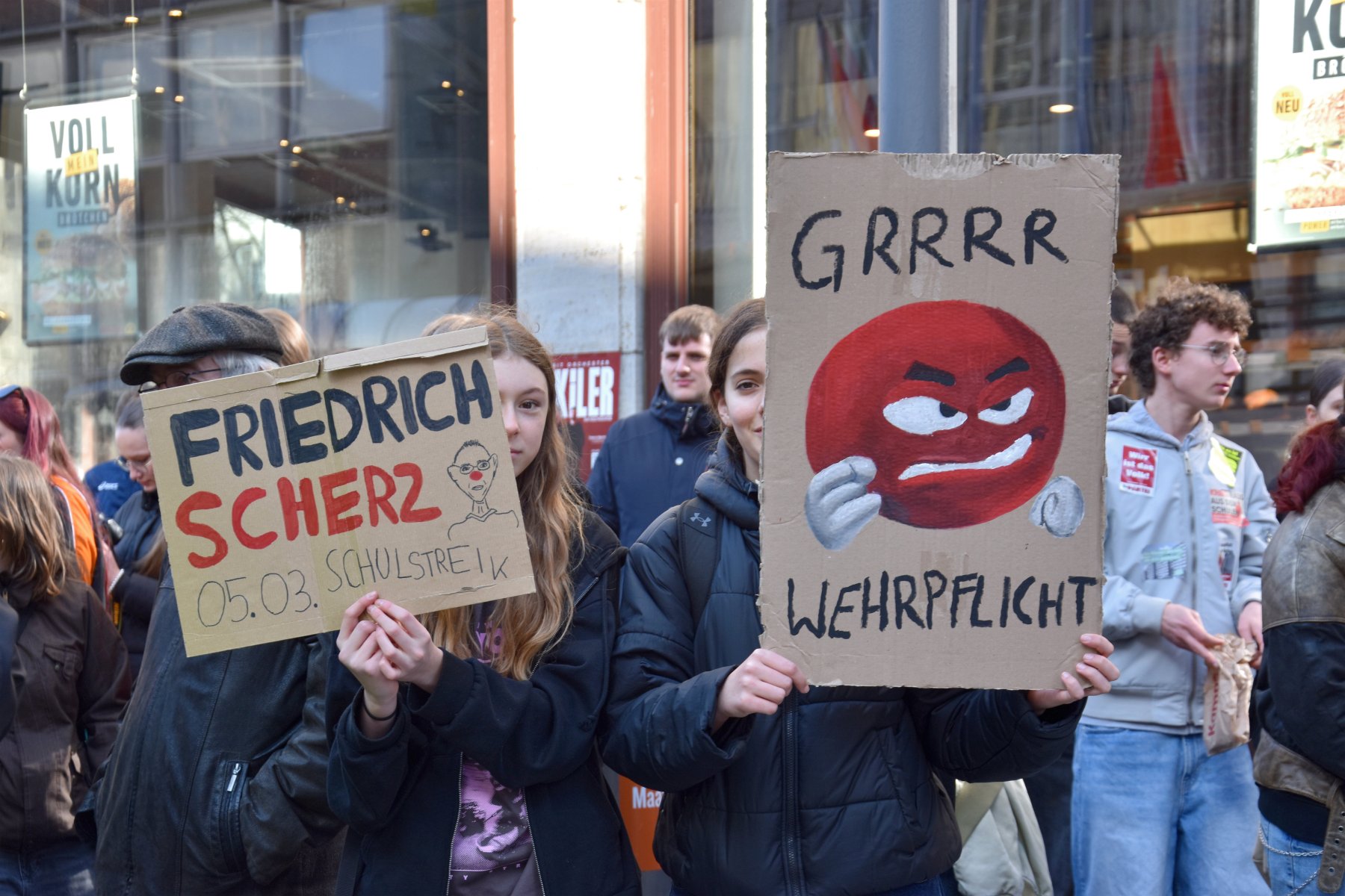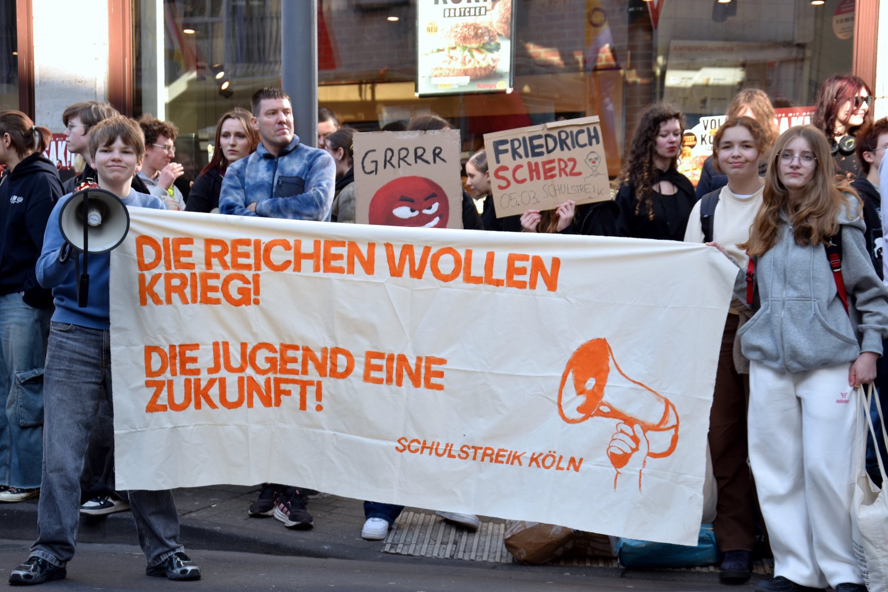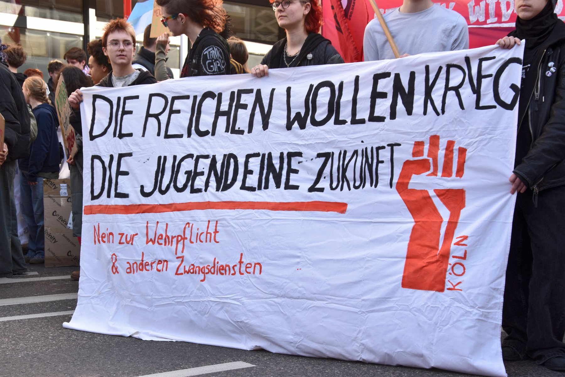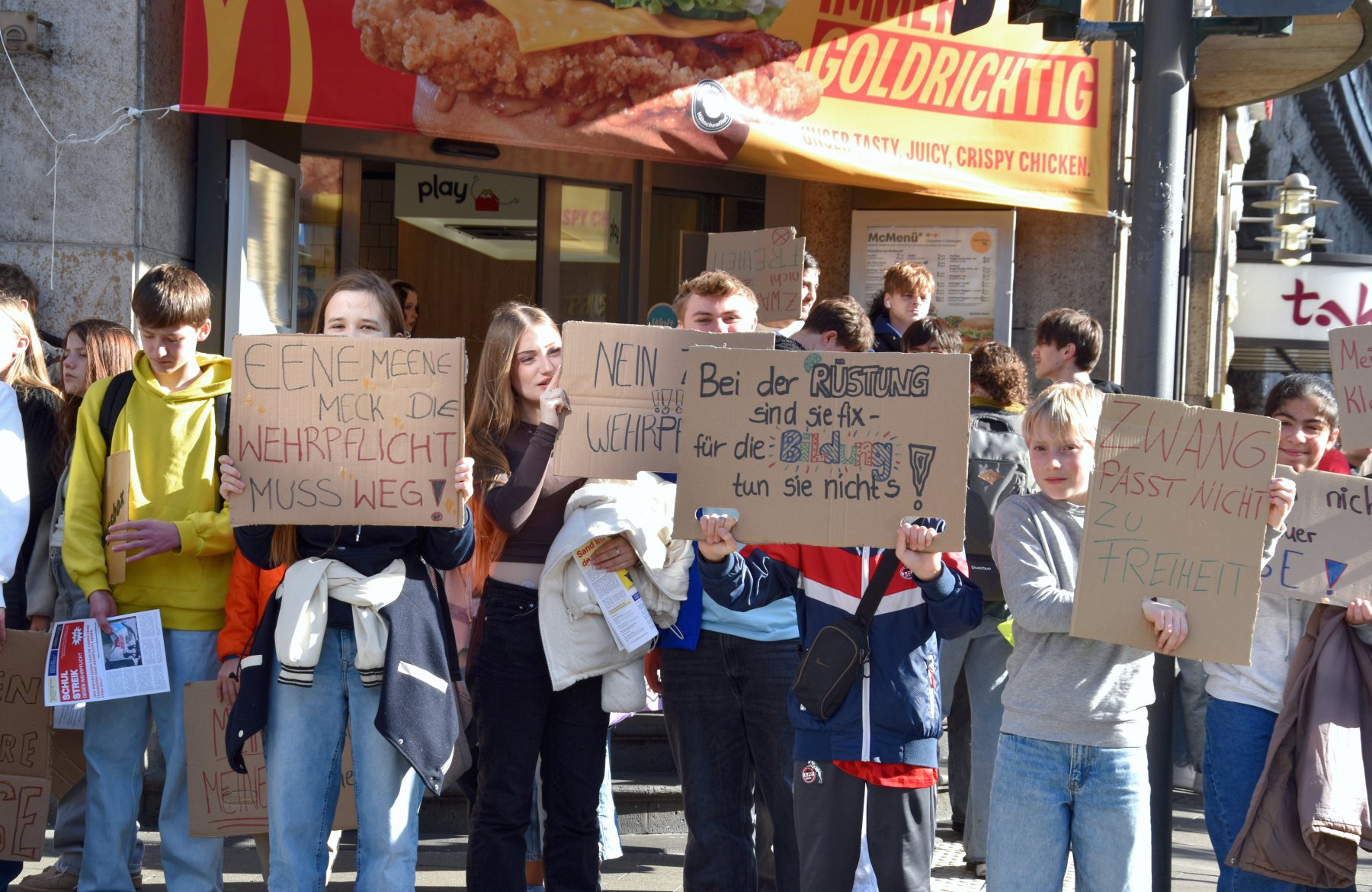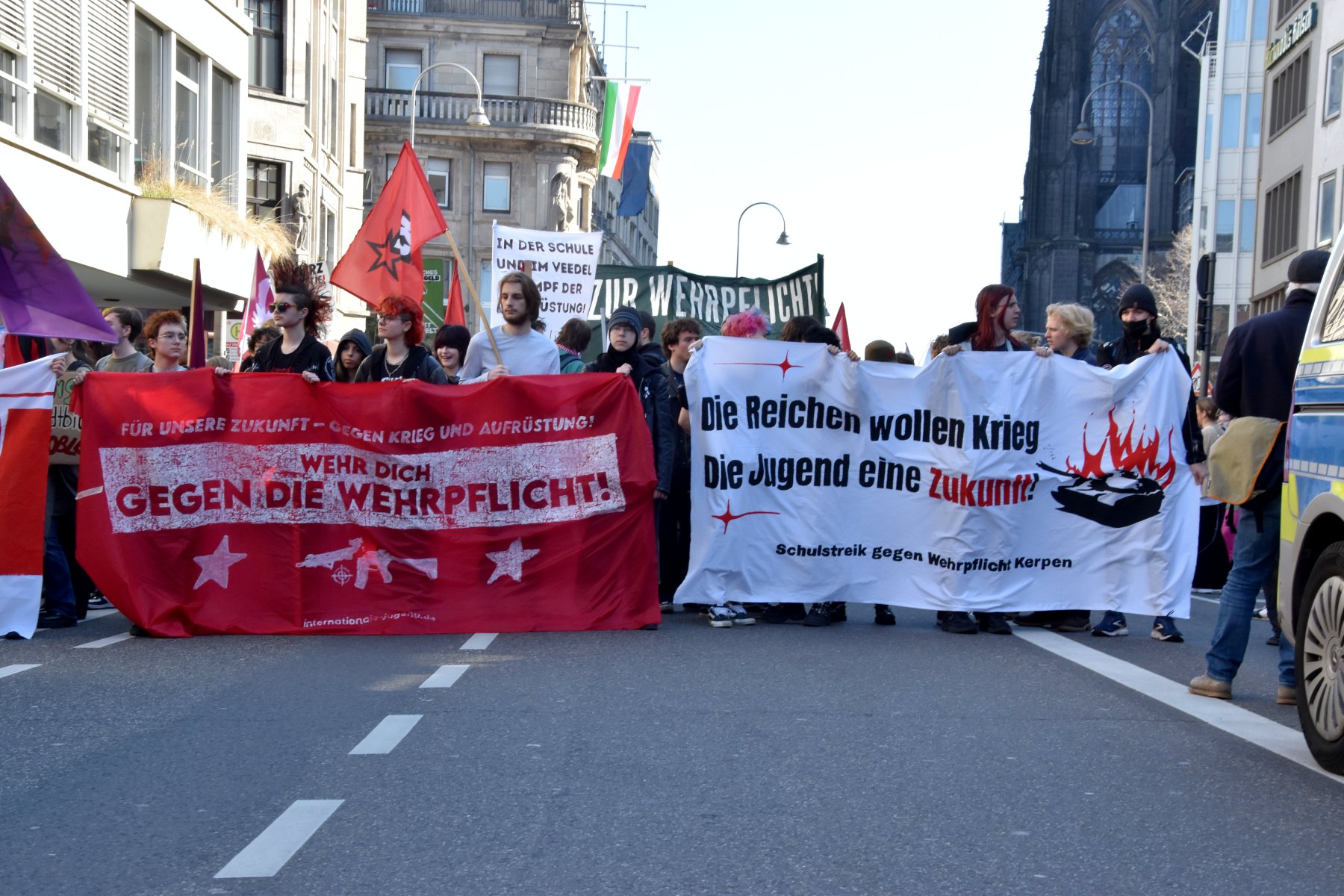 Köln – Am Donnerstagvormittag haben in Köln Schülerinnen und Schüler im Rahmen des bundesweiten „Schulstreiks gegen Wehrpflicht“ gegen die Neuausrichtung des deutschen Wehrdienstgesetzes demonstriert. Die Kundgebung am Hauptbahnhof war Teil einer koordinieren Protestwelle, die heute an über 100 Orten in ganz Deutschland stattfand.
